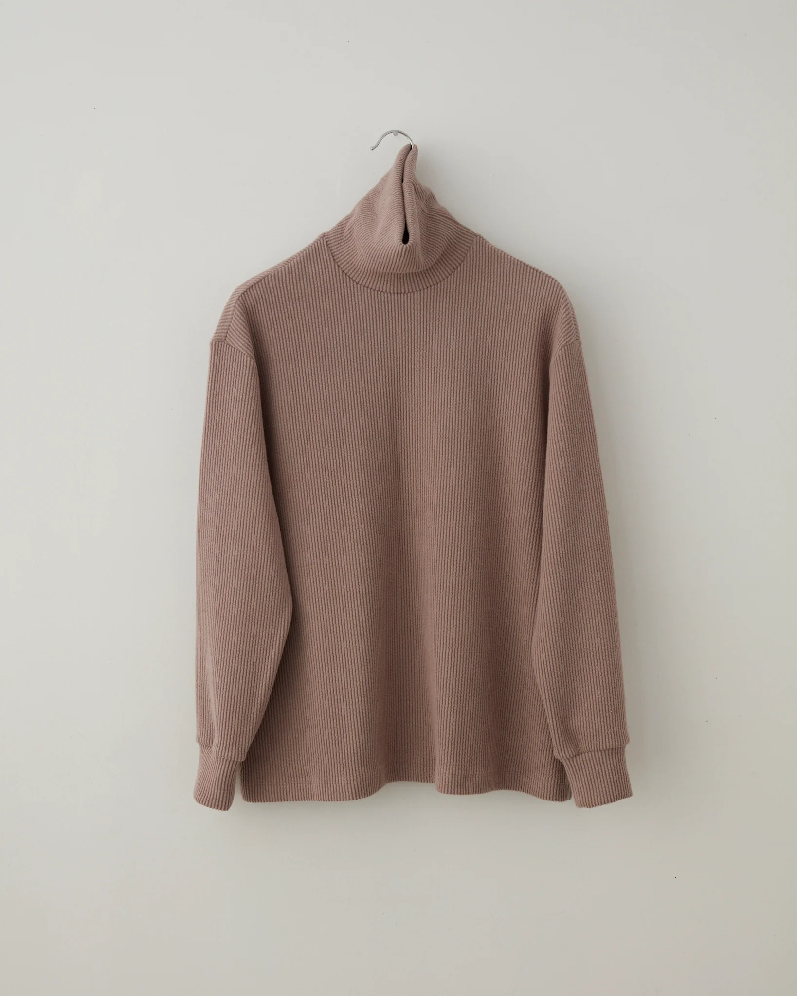A boxy fit long sleeve turtleneck, with an extra wide body made of Japanese wide-wale cotton/poly blend.